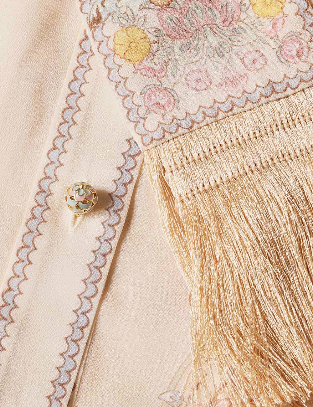 Main and tie: 100% viscose; slip: 100% viscoseDry clean only code f (hydrocarbon only);Main: remove any detachable trims prior to dry cleaning;Cover to protect trim;Iron in low temperature with protective cloth;Light steam only;Do not spot clean