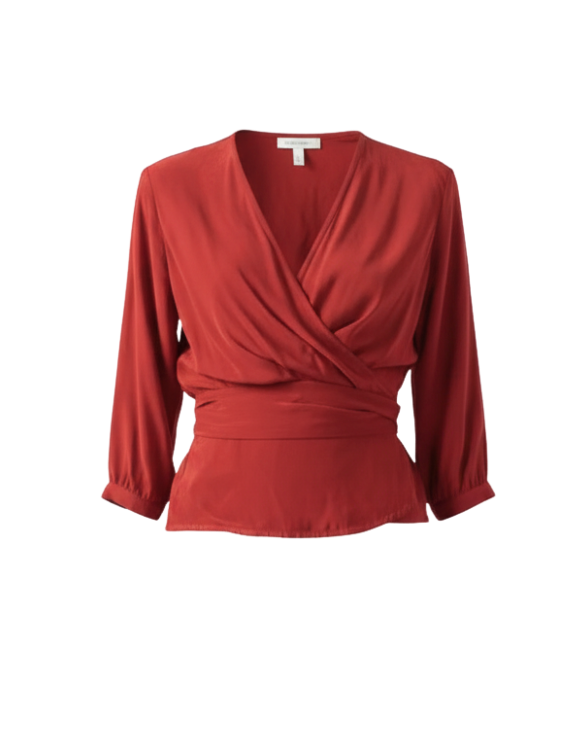 This top-selling wrap dress from ESSK features two bust pleats, 3/4 length sleeves and fullness in the skirt. This timeless staple for the wardrobe can be dressed up with a skirt or slip dress or dressed down with jeans. Its wrap tie makes it super comfortable and easy to wear.