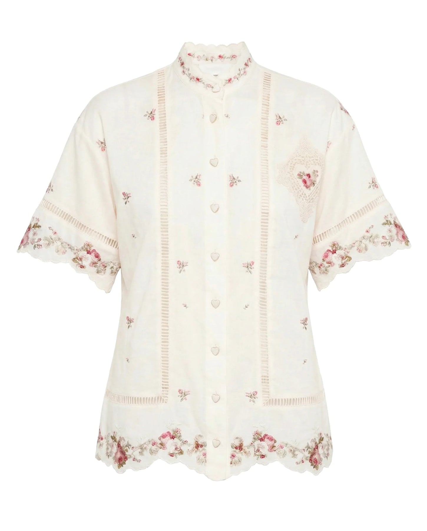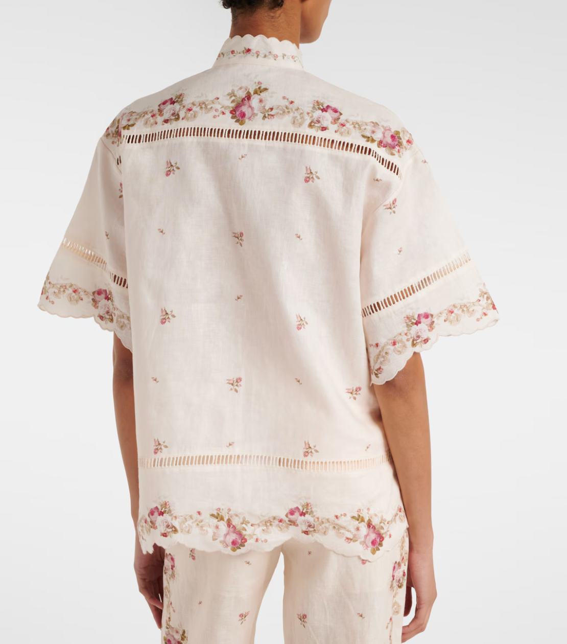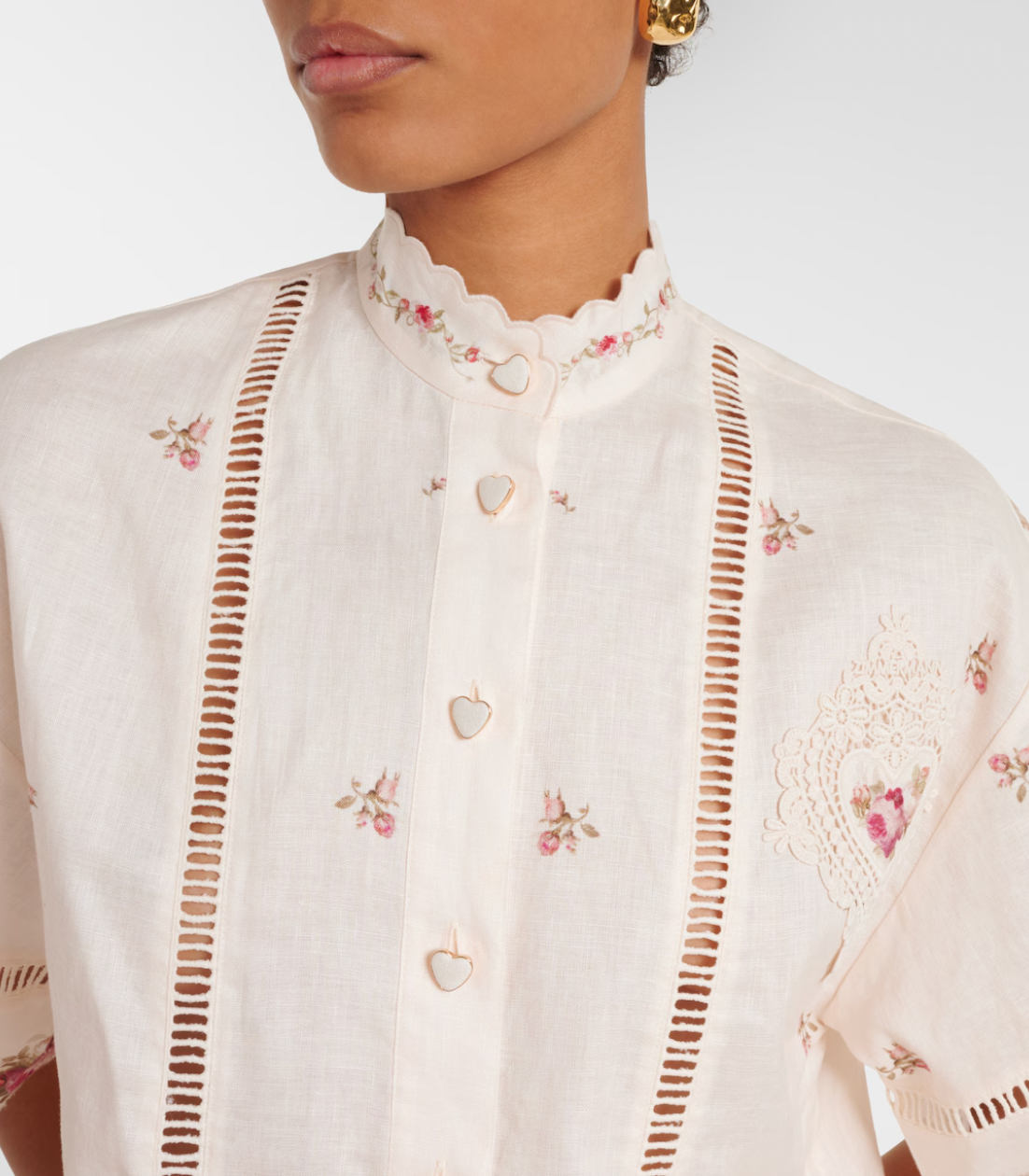 - Material: 100% linen - Care instructions: dry clean: Color: pink - Designer color name: Cream/Pink Rose - Collar: band - Closure: buttoned front