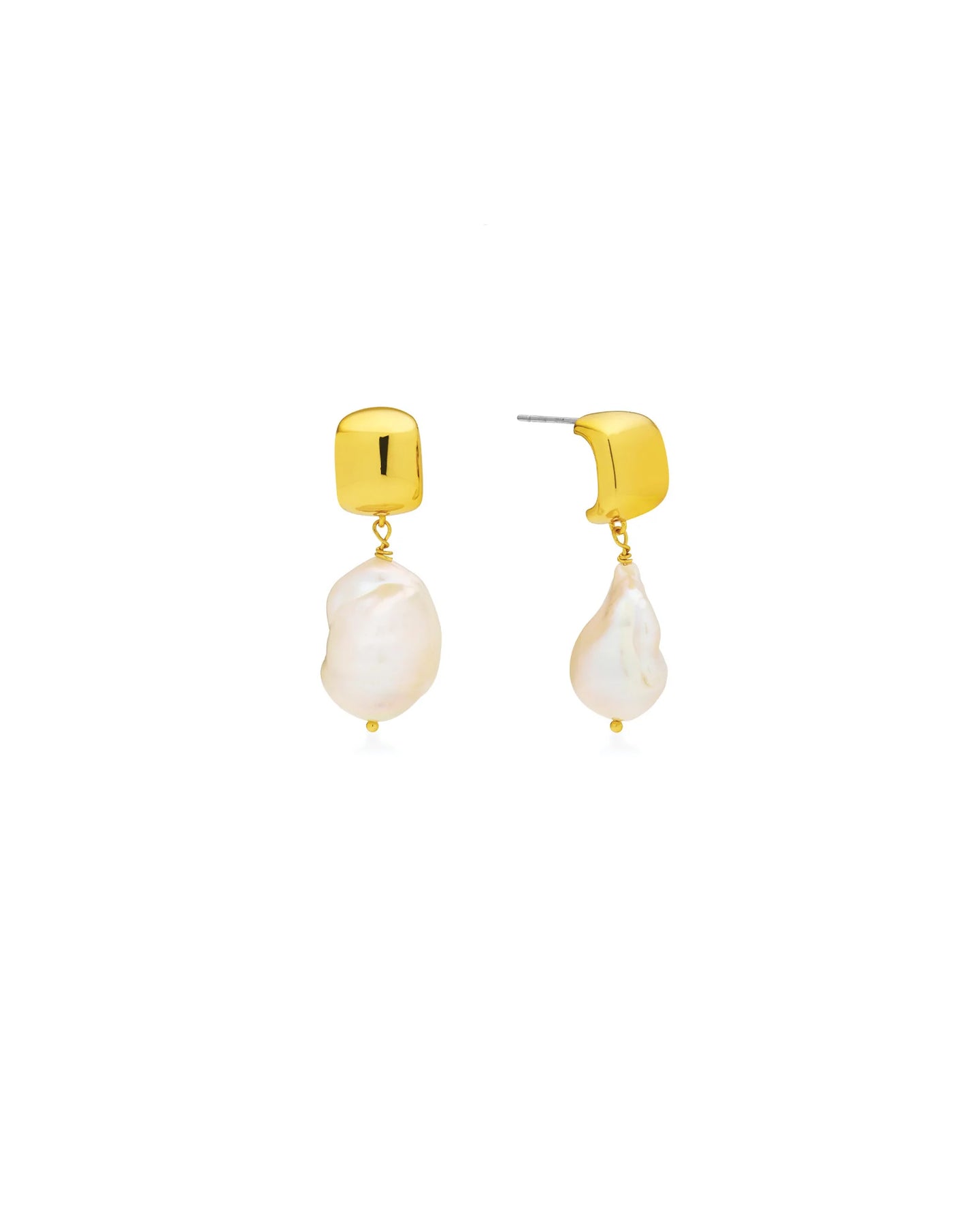 The Olbia Earrings will add glamour to your everyday style. Showcasing a lustrous AAA+ freshwater Pearl suspended beneath a polished curved pendant. *Please note that the weight is measured per earring.