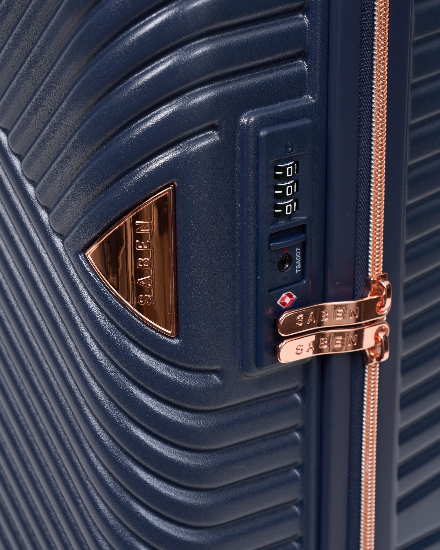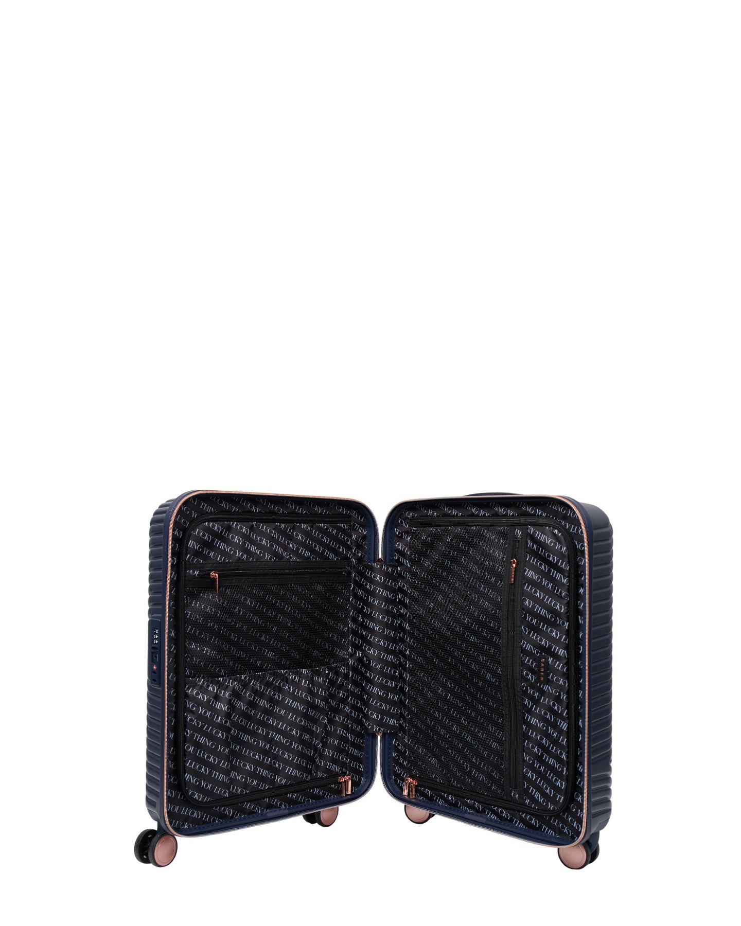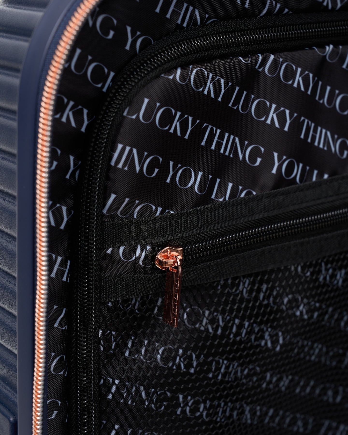 Clever inside and out, meet the perfect carry-on cabin bag to keep your personal belongings tucked and tidy. Made from moulded polycarbonate with metallic rose gold detailing for lightweight and robust construction.