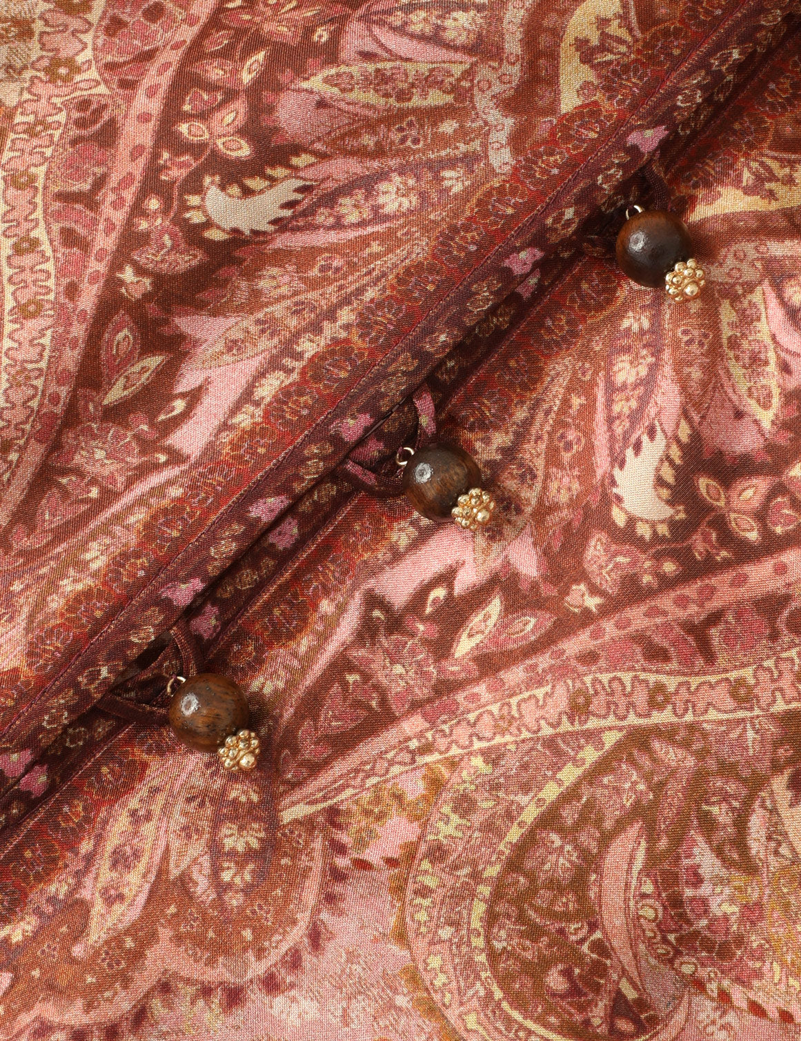 Rouleau button detailing at collar and centre front