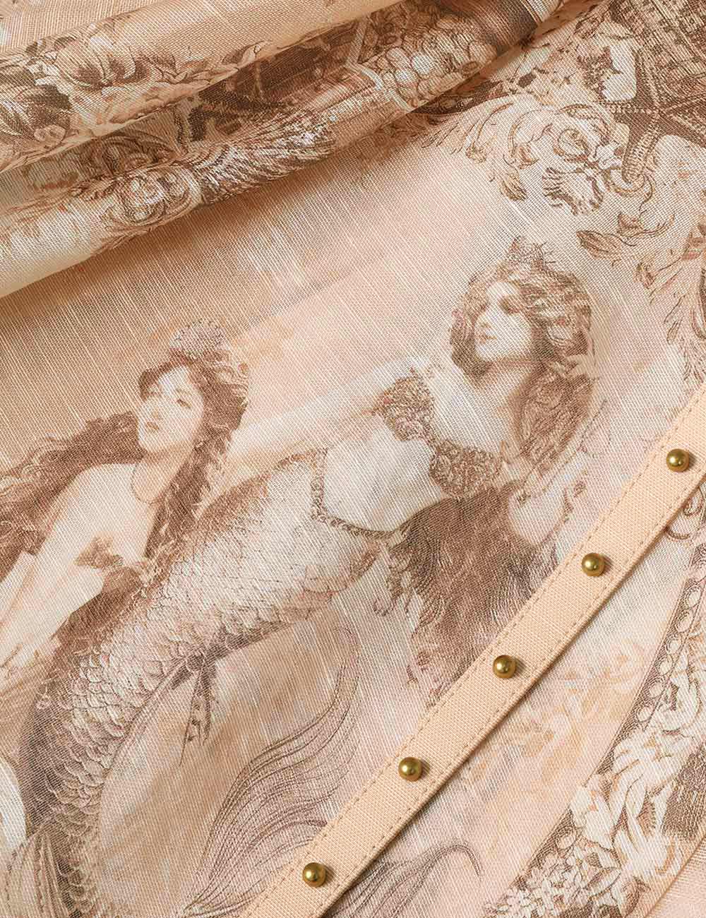 The Rebellion Beaded Midi Skirt in Blush Mermaid from our Cruise 2026 Collection, Twisted Romance. A silk-linen organza skirt featuring a fixed waistband, removable waist belt, finished with a fully flared hem.